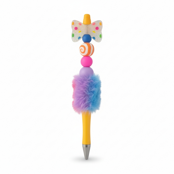 Funky bow beaded fury pen
